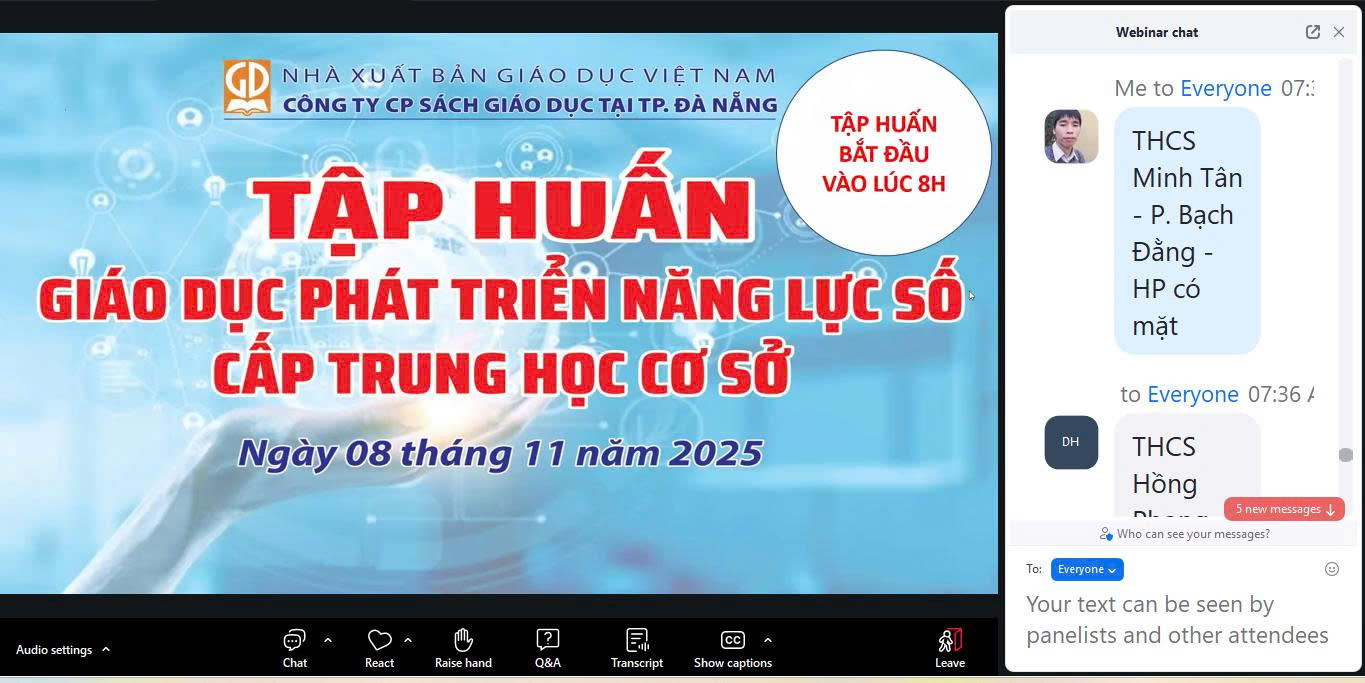 Thực hiện hướng dẫn của Sở Giáo dục và Đào tạo Hải Phòng về việc phối hợp tổ chức tập huấn Giáo dục phát triển năng lực số (GDPTNLS) cấp THCS, sáng ngày 08 tháng 11 năm 2025, cán bộ, giáo viên trường THCS Minh Tân đã tham gia buổi tập huấn trực tuyến qua nền tảng Zoom.