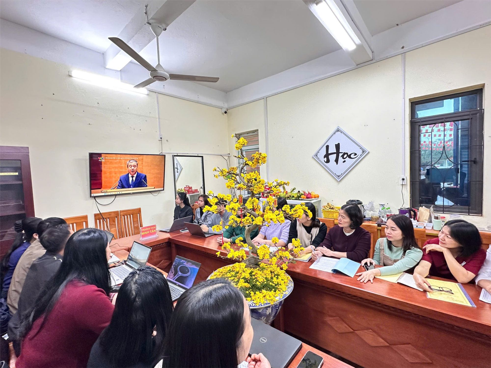Buổi học tập diễn ra trong không khí tập trung, thể hiện sự thống nhất cao về ý chí và hành động của tập thể sư phạm trường THCS Minh Tân, quyết tâm thực hiện thắng lợi các nhiệm vụ chính trị trong năm 2026.