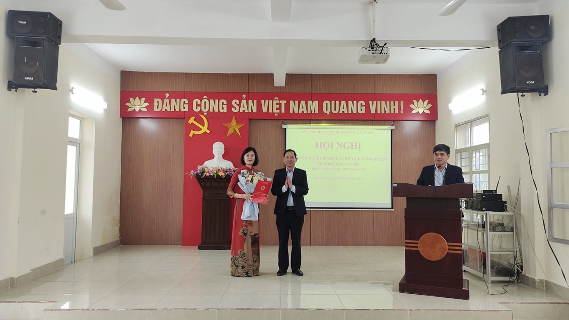 Chiều ngày 20/02/2023, UBND huyện Thuỷ Nguyên tổ chức Hội nghị công bố quyết định của UBND huyện công tác cán bộ. Tham dự Hội nghị có ông Lê Nam Thắng - UV BTV huyện uỷ; lãnh đạo Ban Tổ chức huyện uỷ, Phòng GD-ĐT huyện, phòng Nội vụ; Đại biểu địa phương có lãnh đạo Đảng uỷ, HĐND, UBND, UBMTTQ xã Minh Tân cùng toàn thể CBGVNV nhà trường.