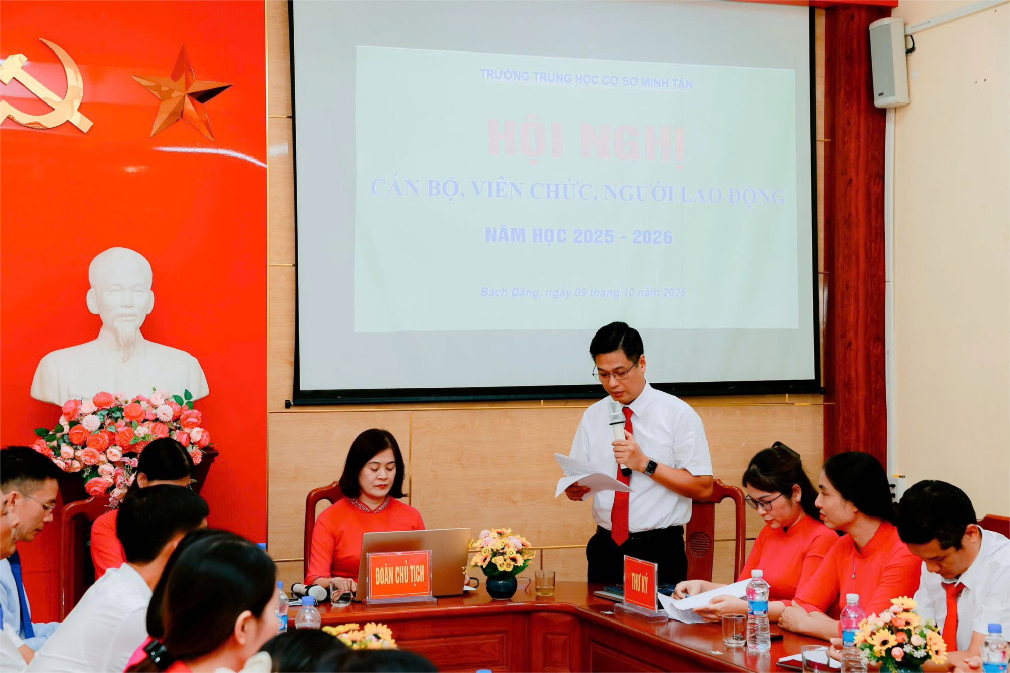 Thực hiện các văn bản chỉ đạo của Sở GD-ĐT, của Phòng VH-XH phường Bạch Đằng, chiều ngày 09/10/2025, Trường THCS Minh Tân tổ chức Hội nghị cán bộ, viên chức, người lao động năm học 2025-2026.